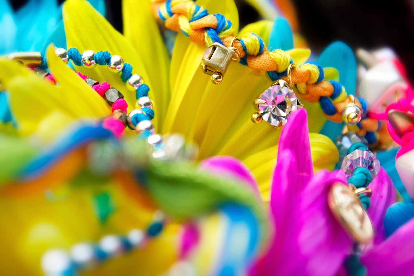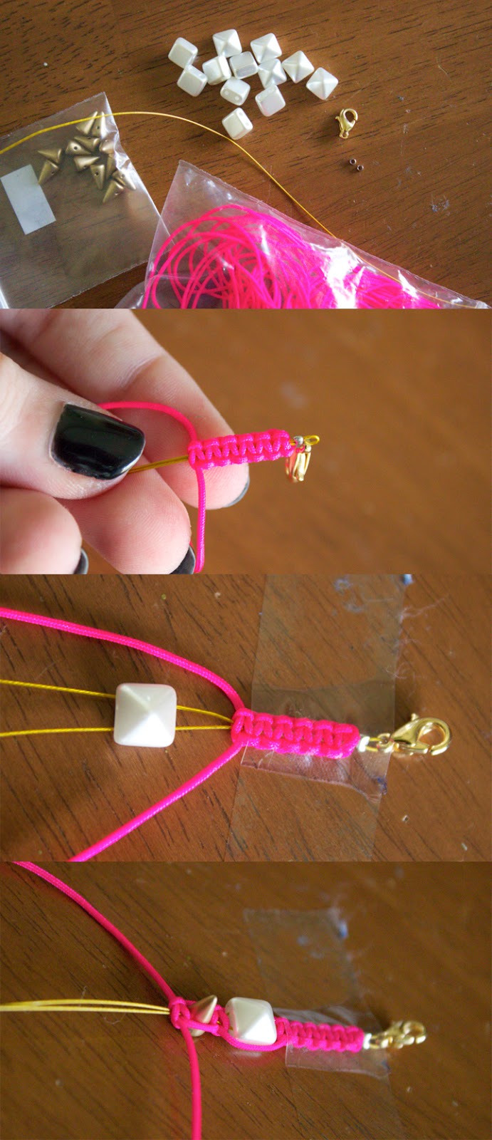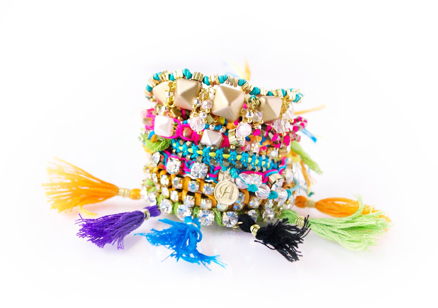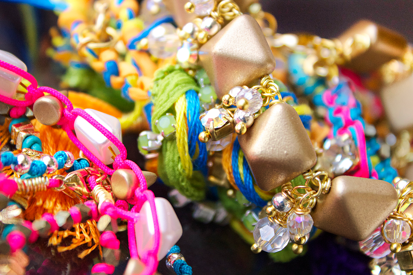 I'm kind of obsessed with Goody's Czech Glass pyramid and spike beads; these are just my style! Plus, they add a bit of edge into the colorful bunch. I am also using embroidery floss I got from my local craft store to make the tassels, because tassels rock.