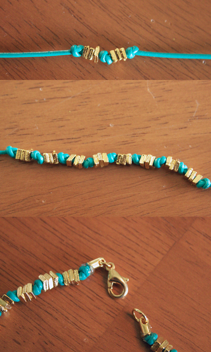 Step 2: Tie another knot! Add three beads….repeat. Seriously, EASY!