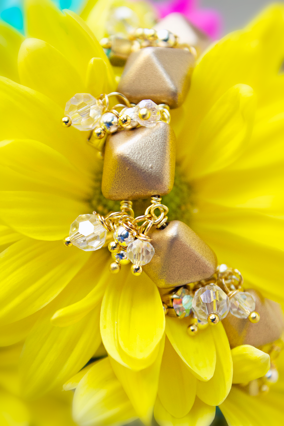 The mix of beads here gives a very detailed look. Goody Beads has got just about every shape and size. I love those brass cubed beads and the gold square beads I used because they have great texture.