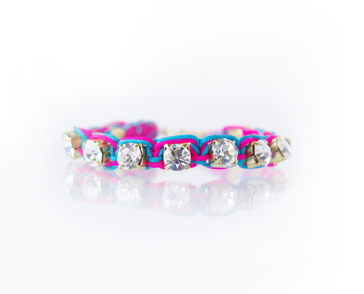 I did the same technique here, but using both the pink and blue cords and beading on cut rhinestones that I had used from the excess of my other projects.