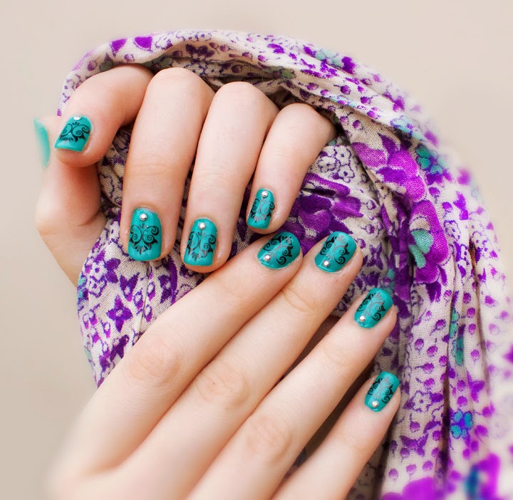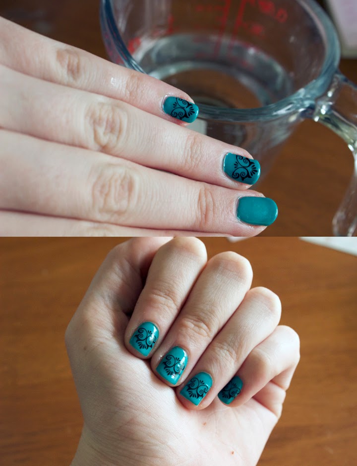 See how easy? Just be careful, while the nails are still wet the decal might move. Repeat for all the other nails.