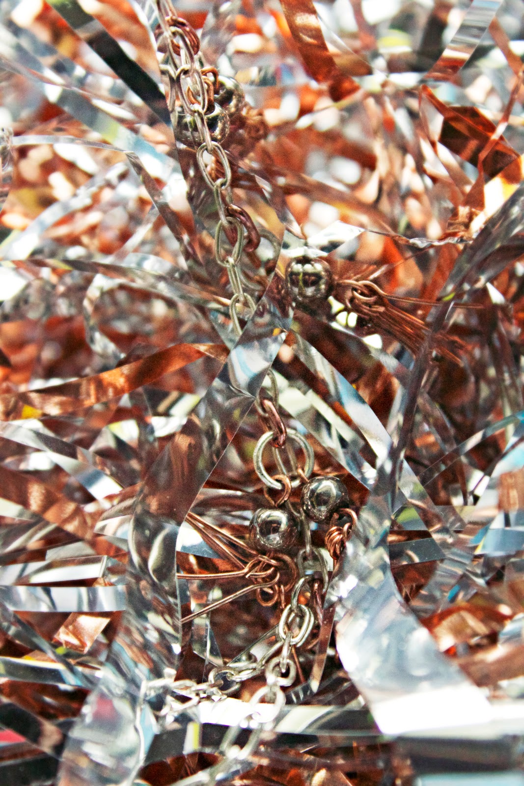 The secret here is the recycled headpins - more on that later - which are grouped together to create metallic tassels.