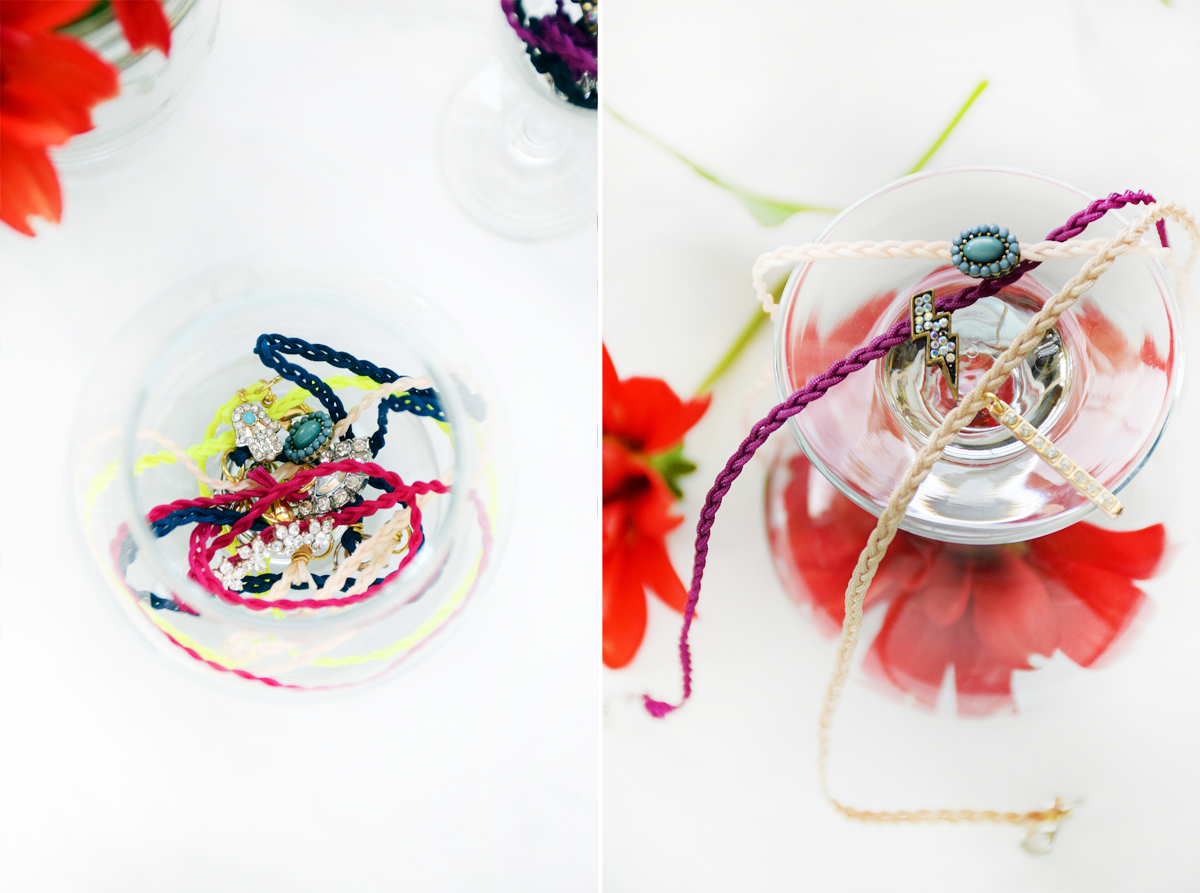 This would be a great BFF project - a total update on those cotton knotted bracelets, right?! You could also use initial beads to personalize these. Make them in all color combos -the more the merrier!