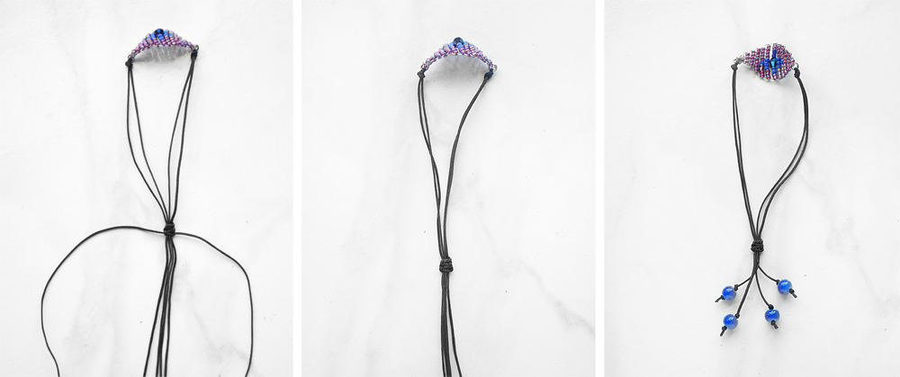 Simply tie off the ends and use your 6mm glass beads as accents. It helps to measure this bracelet over your wrist and find the exact length you need to leave the string, so that it isn't too big or small.