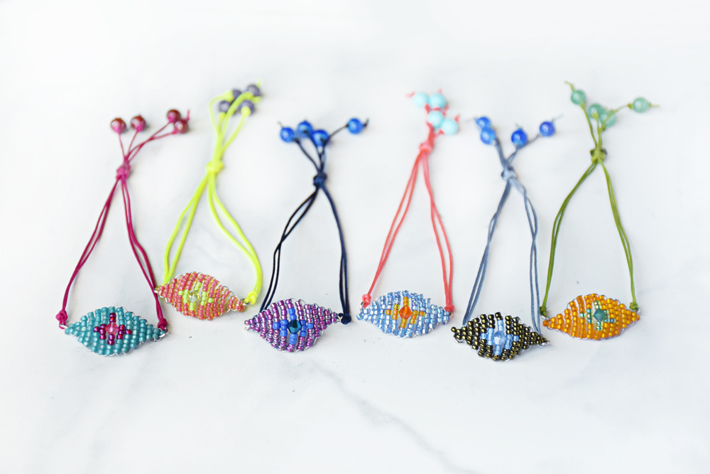 These mini evil eye friendship bracelets are just the bomb.com. I always am wondering what to do with all my seed beads -- I'm not patient enough to embark on an intense woven piece, so these little charms are perfect for those who want just a taste of bead weaving.