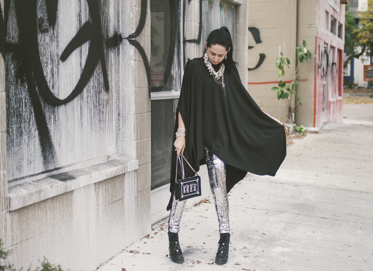 Double, double toil and trouble - just kidding, no real spells here, except for the enchanting gleams of shimmering sequins, Swarovski crystals and silvery accessories. I would dress in this manner everyday if I could, but my morning laziness demands me to resort to more causal outfits for the workday.