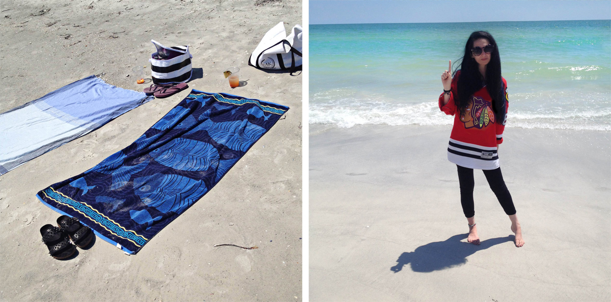 The first thing I did after unpacking was head out to the beach. Yes, it was 90 plus degrees, and yes, I was wearing a hockey jersey. Plus thermal leggings. Those of you who know me and my Blackhawks obsession will understand. I walked up and down the beach, collecting shells and looking at the bright blue waters. It was also the perfect opportunity to rub in the Hawks’ Stanley Cup WIN while in Tampa Bay! I did catch some flack from the natives there, but that was kind of my point.
