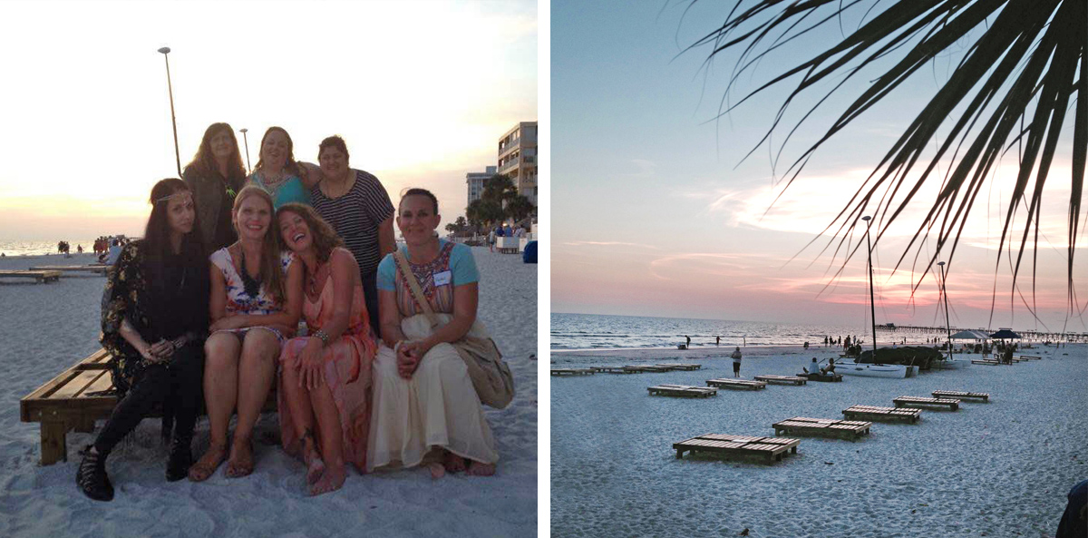 It was a 60 degree, rainy June day in Chicago when I left earlier this week. After a short flight, I was greeted with the humid heat and balmy palm trees of tropic Tampa Bay, Florida. Us Ambassadors all met at the airport, and were shuttled straight to our beachside hotel resort, where we would be spending two nights during the trip. We were given goodie bags, which included beads (of course), snacks, and other gifts, including this bright purple embellished towel, obviously for using on the white sand beach!