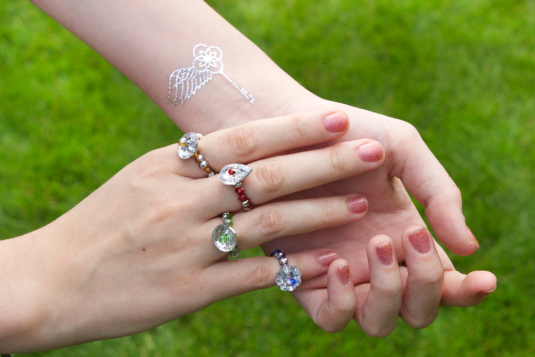 You can almost see the sparkle and twinkle of fairies flying around these glittery treasures! My newest tutorial combines gleaming rhinestone buttons and silver plated crystals to create delightfully dainty stacking rings. This is a beginner tutorial, so everyone can enjoy making these!