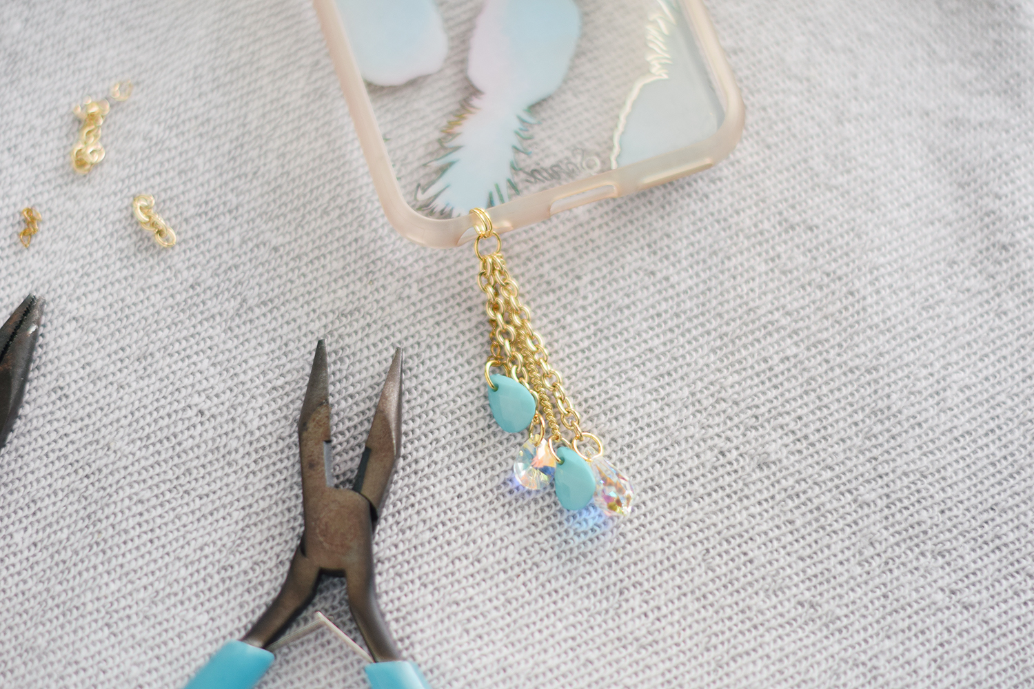 Connect to the bottom of the phone case with 10mm silver jump rings.