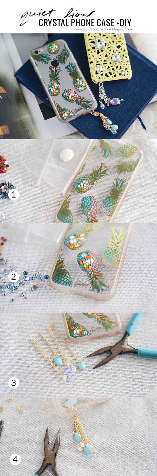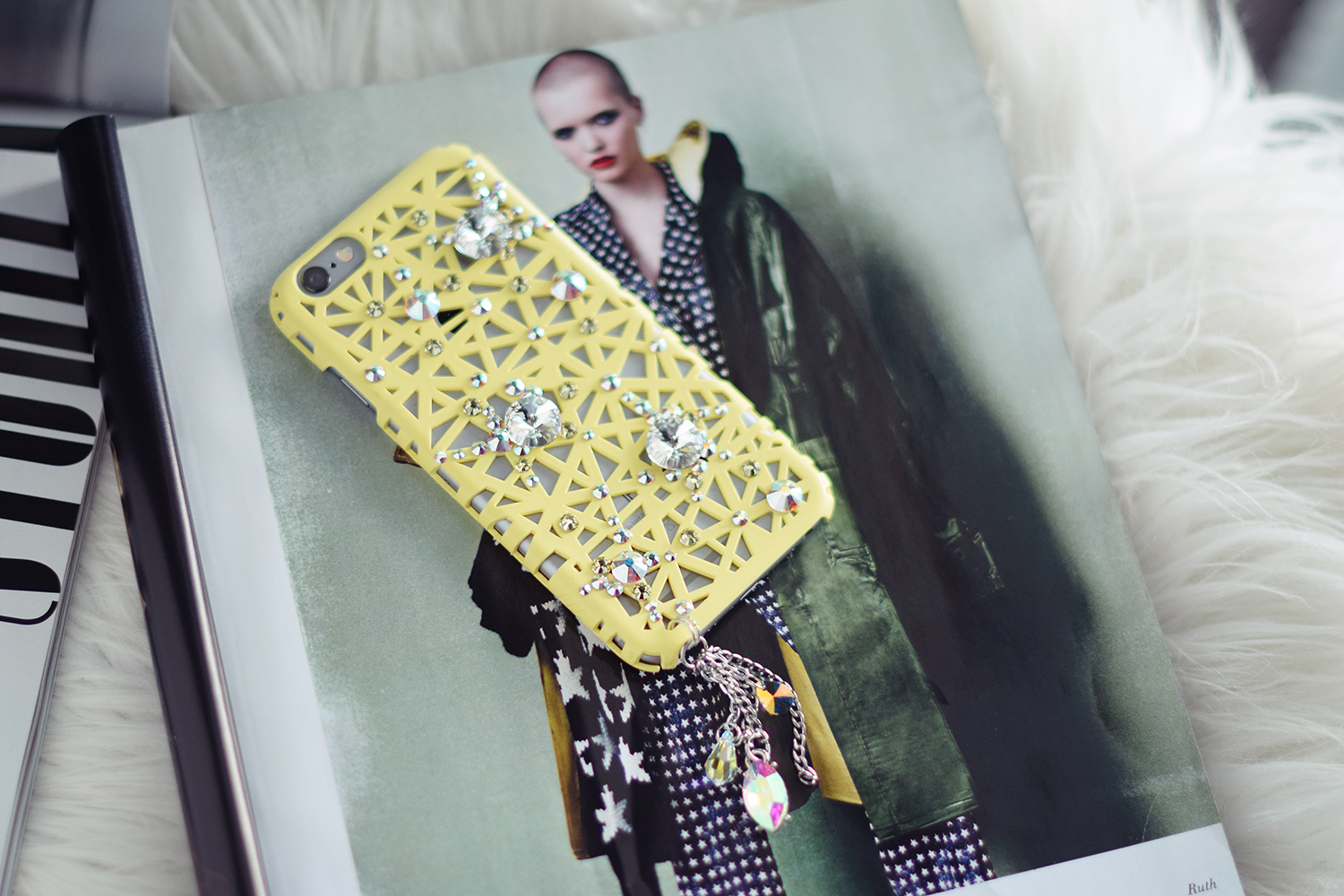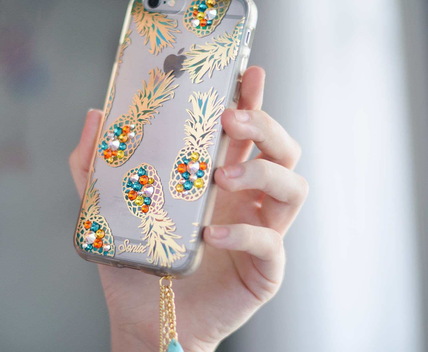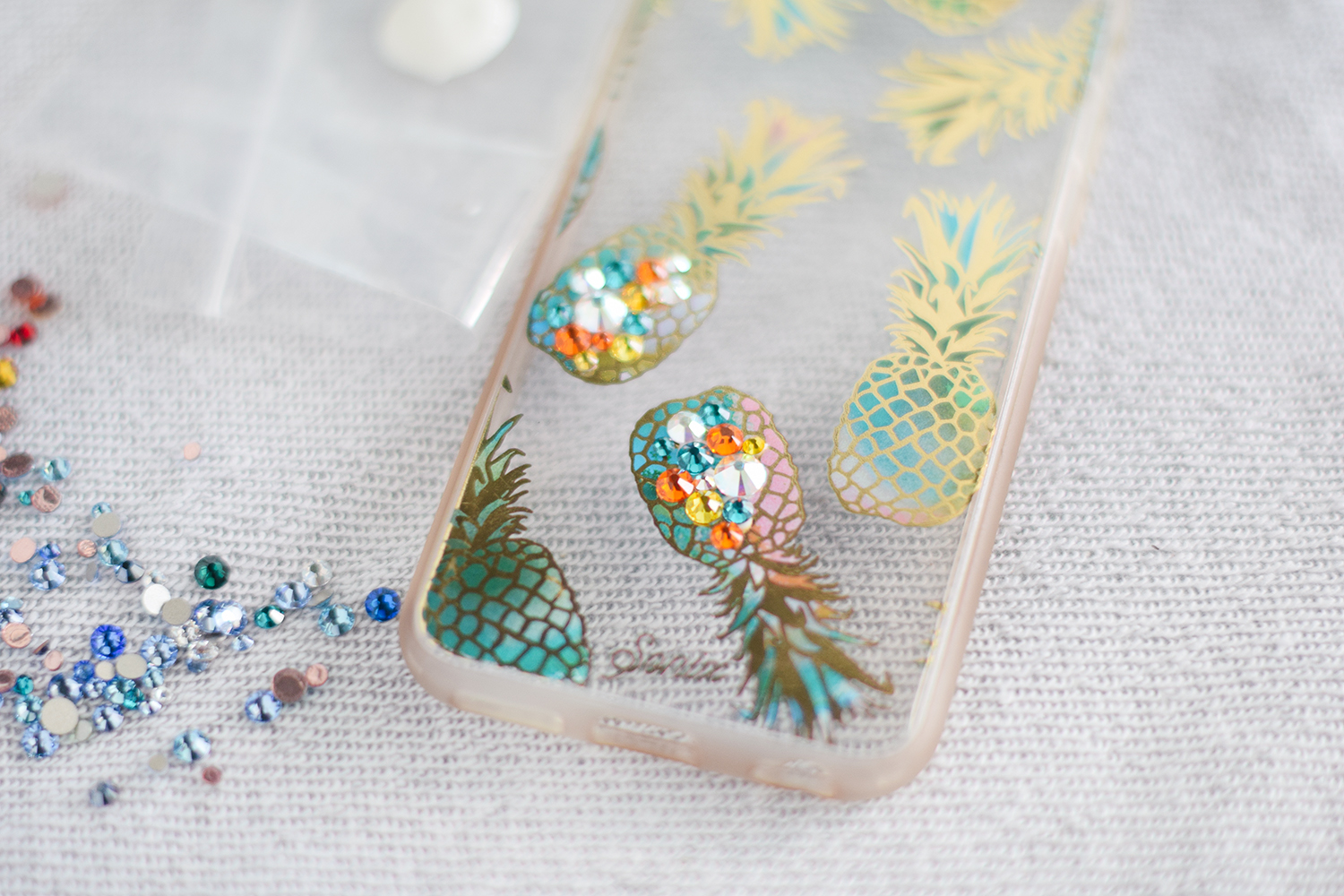 Use any phone case that you currently have - the crystals definitely spruce up the look. Or, if you’re like me, create a wardrobe of phone cases that you can switch out depending on your mood.