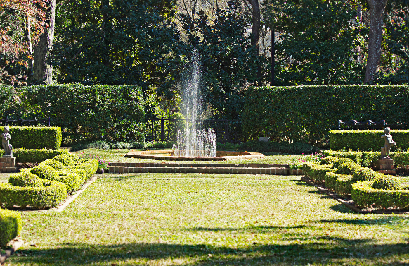 After walking thorough this alcove, I was surprised when the whole garden opened up, revealing a large span of grass, dotted with mature, knobby trees. On the left, the garden pushed back, housing a huge, double-sided fountain and statue of Artemis. On the right, the Mansion. It sat upon a hill, overlooking its grand belongings.