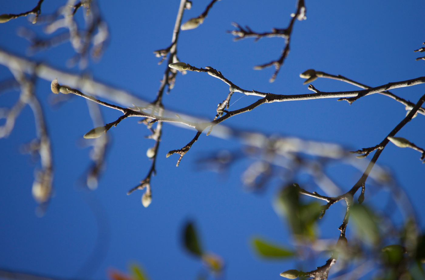 We left the building, looked around - still no sign of this grandiose garden extraordinaire Google had promised. Just a bunch of trees, small road leading down a hill, and condos on the other side. We walked down the road a bit to a landing parking lot, and wooden bridge slowly emerged from behind leafless trees. Check ✓. A river flowed under it, complete with sandy brown water and plenty of gnarly branches. I could make out some sort of small iron dwelling at the other end of said bridge. We got closer, and were again met with another woman- she quickly checked we had stickers and let us pass. What is….. your name? What is…your quest? What is…. your favorite color? Blue. Ok, you can go. Making our way across this (surprisingly swingy and precarious) bridge, I snapped some shots carefully until we made it to the other side.