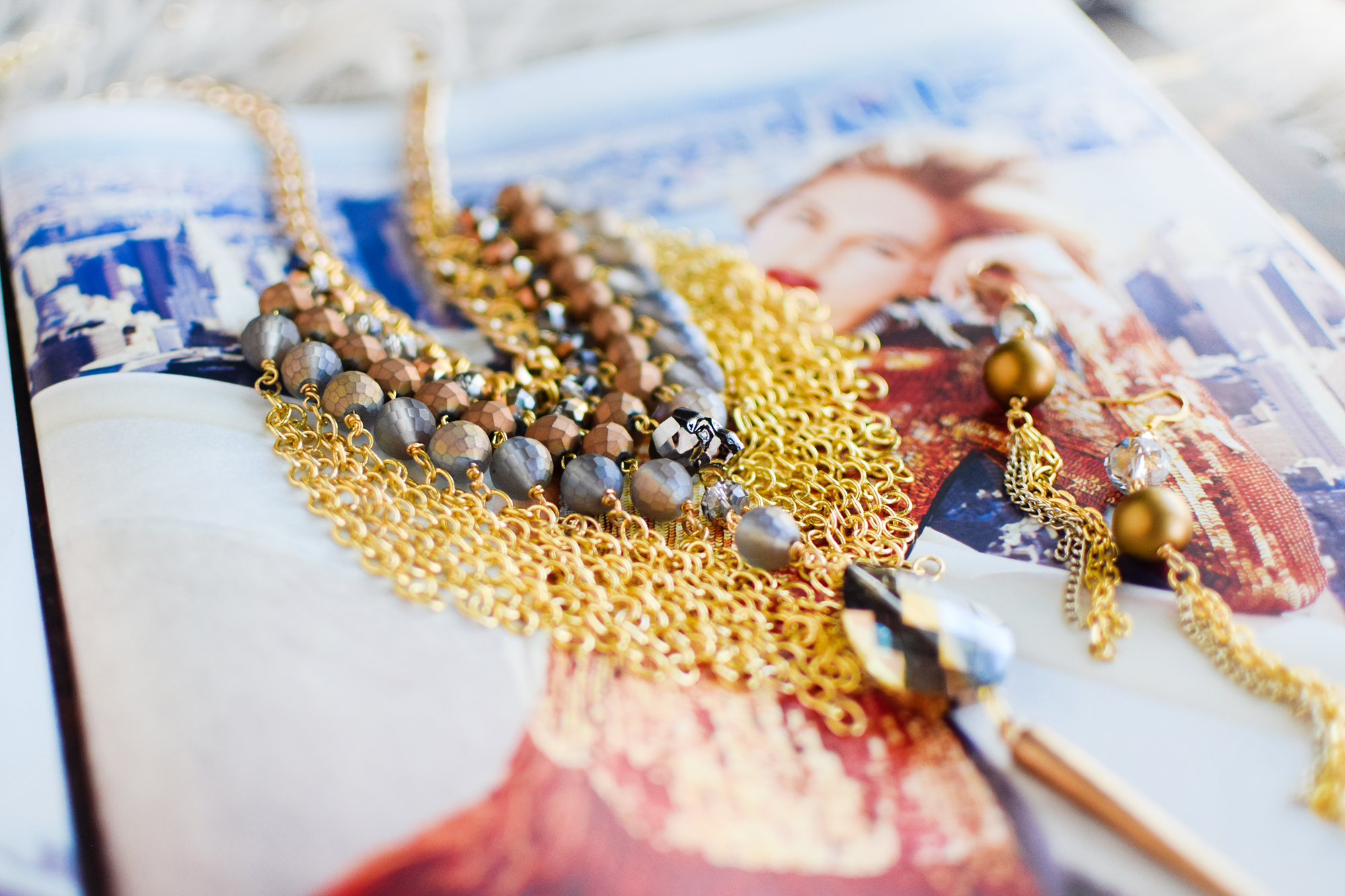 If you’ve got random gemstone or crystal beads lying around, this is the perfect time to use them. I like using complimentary, but not matching, stones for these necklaces. It gives them an eclectic feel! These are meant to be long, rosary-style pieces, but feel free to change the length depending on the look you are going for.