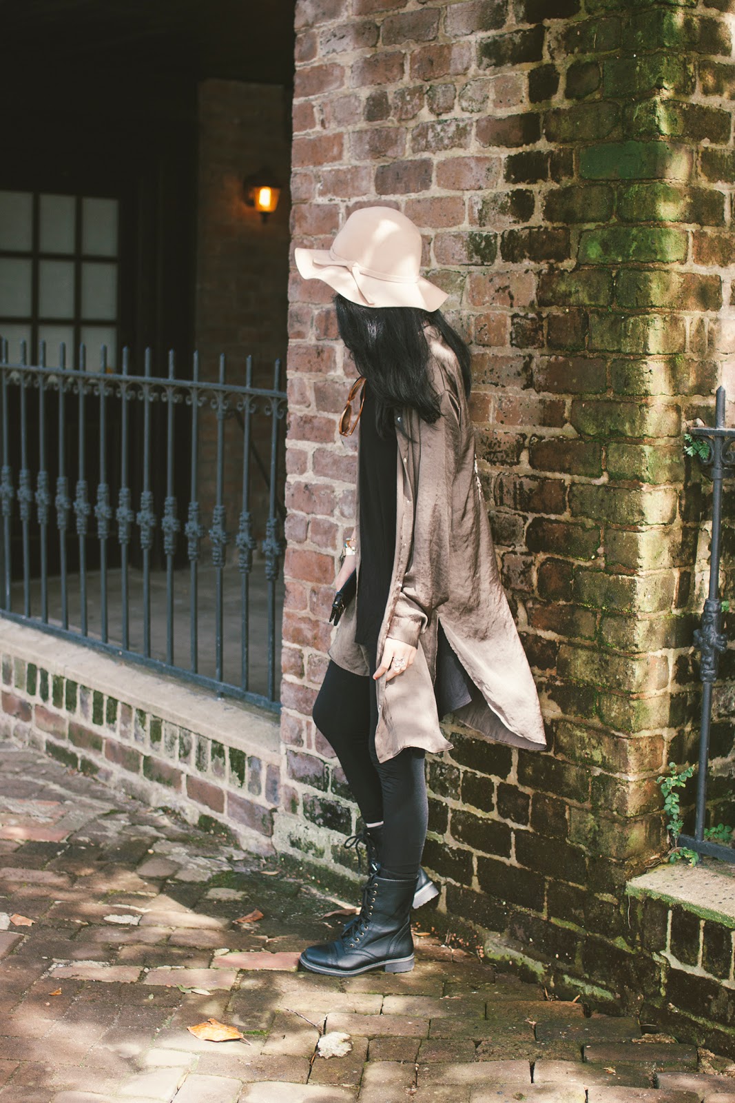 The olive greens of Savannah, Georgia perfectly complimented my pre-planned outfit. Black is always the answer, but this time, is matched with a super silky Zara jacket and tawny floppy hat.