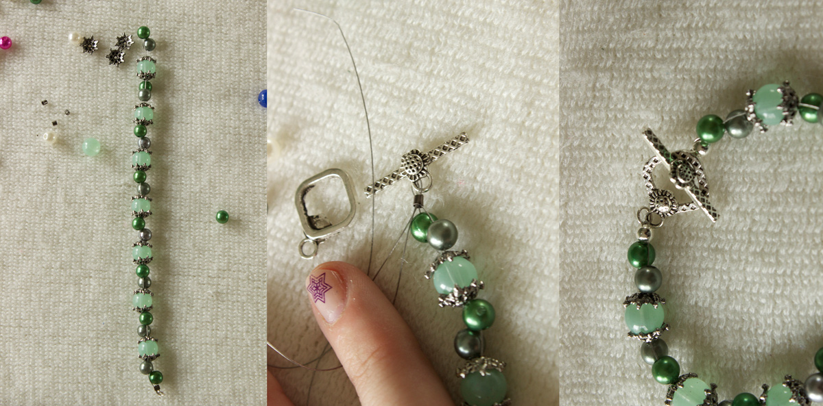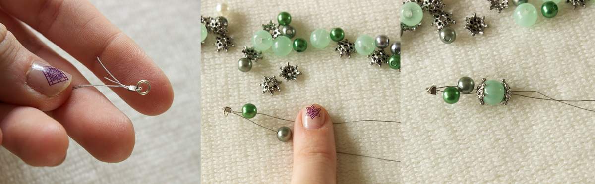 I also used these glass jade beads from PandaHall and crimp covers (which are not pictured here).