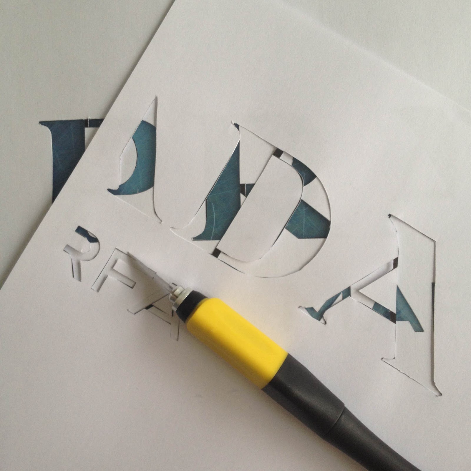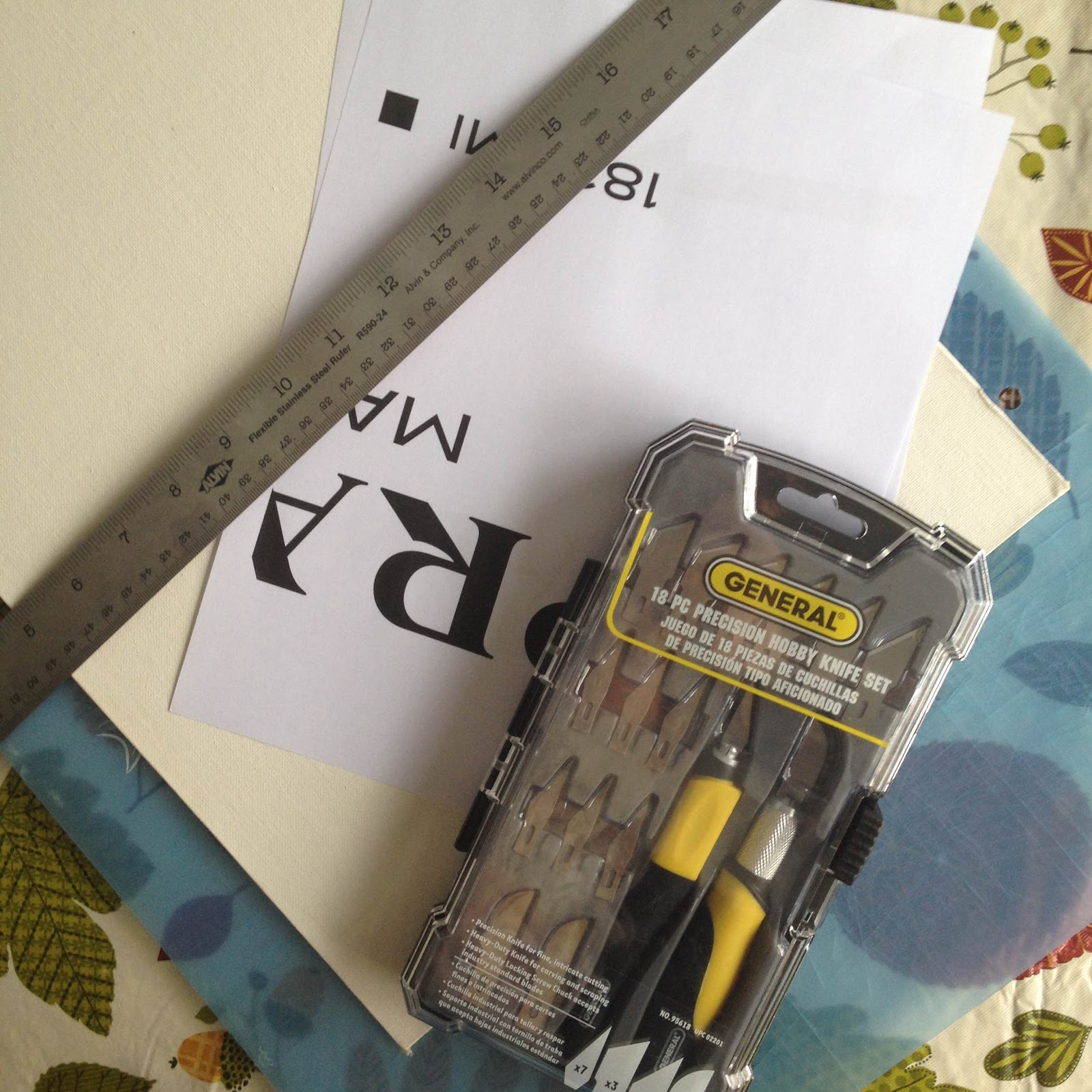 Collect a canvas, a set of xacto knives, a cutting board, sharpie and a stencil. This stencil can be a quote, logo, or any simple graphic ( I googed Prada Marfa sign for mine and printed in black and white).